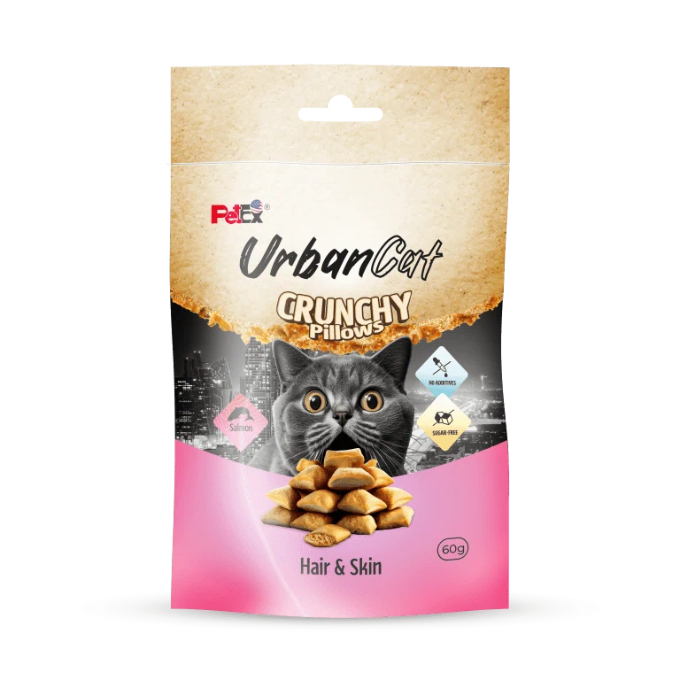 אורבן קט קראנצ’י כריות לחתול במילוי קרם בשר דג וסלומון 60 גרם – פטקס