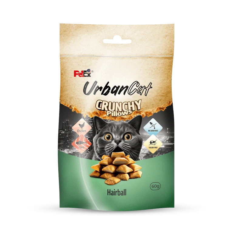אורבן קט קראנצ’י כריות לחתול במילוי קרם בשר עוף וטונה 60 גרם – פטקס