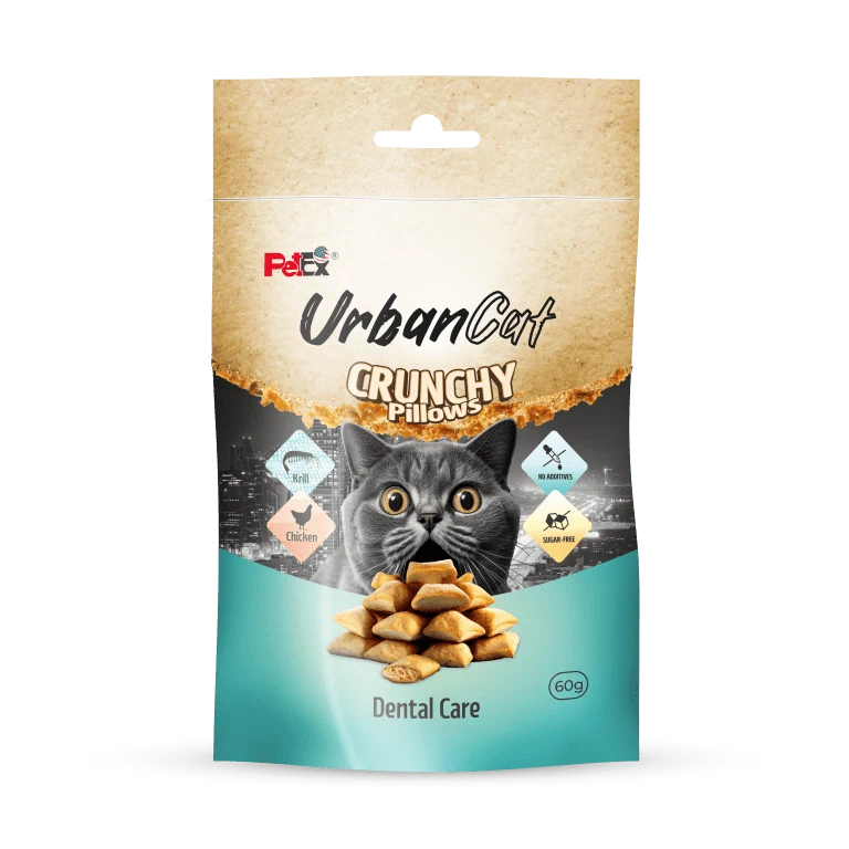 אורבן קט קראנצ’י כריות לחתול במילוי קרם בשר קריל ועוף 60 גרם – פטקס