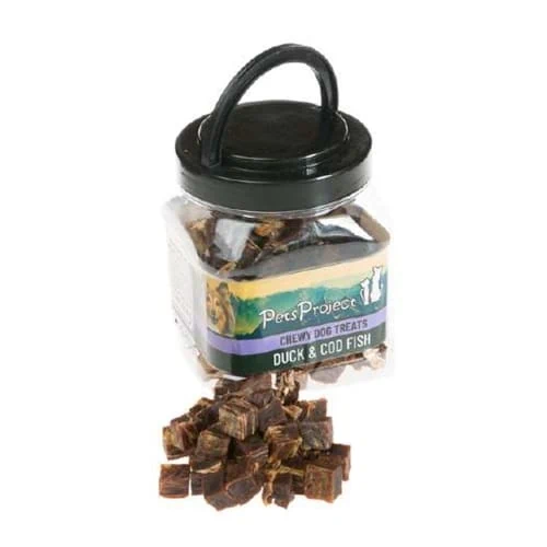 חטיפי קוביות ברווז ודג קוד בצנצנת לכלב פטס פרוג'קט 400 גרם