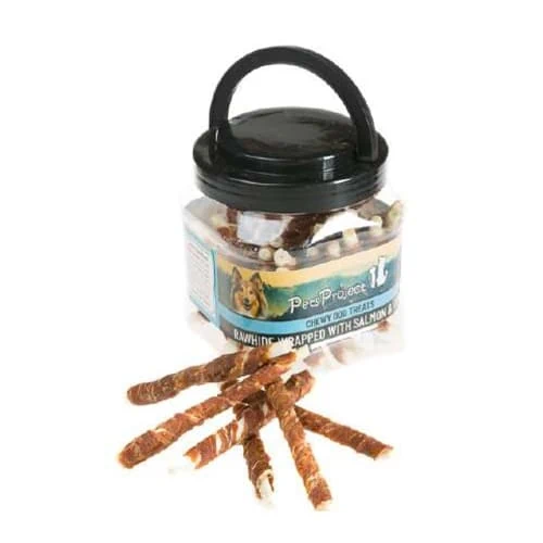 חטיפי מקלות בקר עטוף סלומון בצנצנת לכלב פטס פרוג'קט 400 גרם