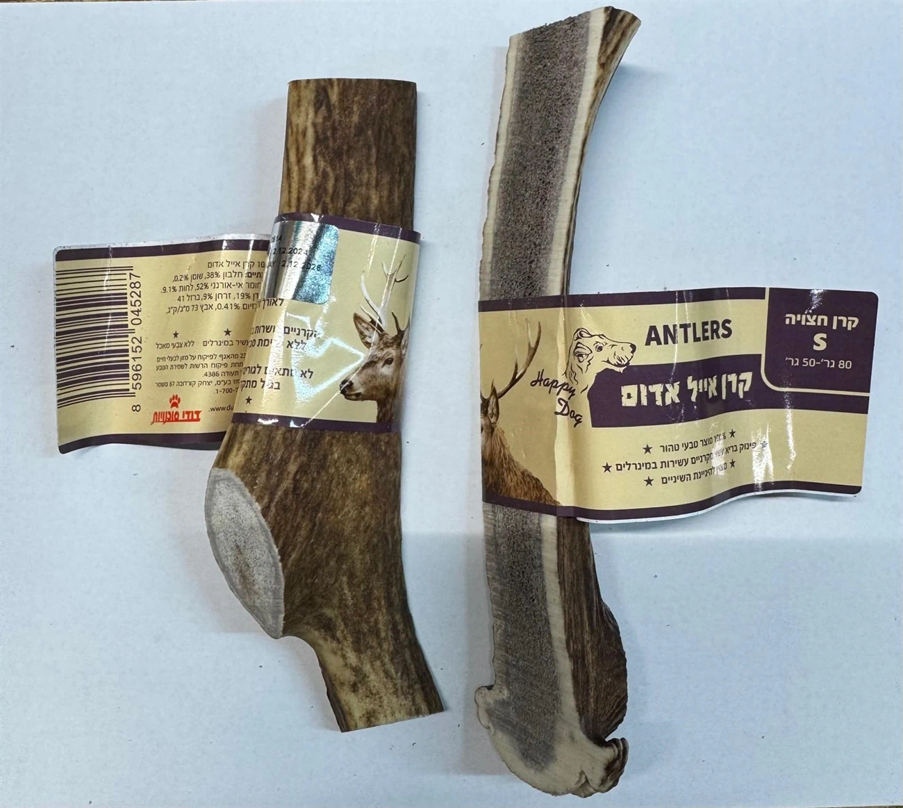 קרן אייל אדום לכלב חצויה 100% טבעי מידה S