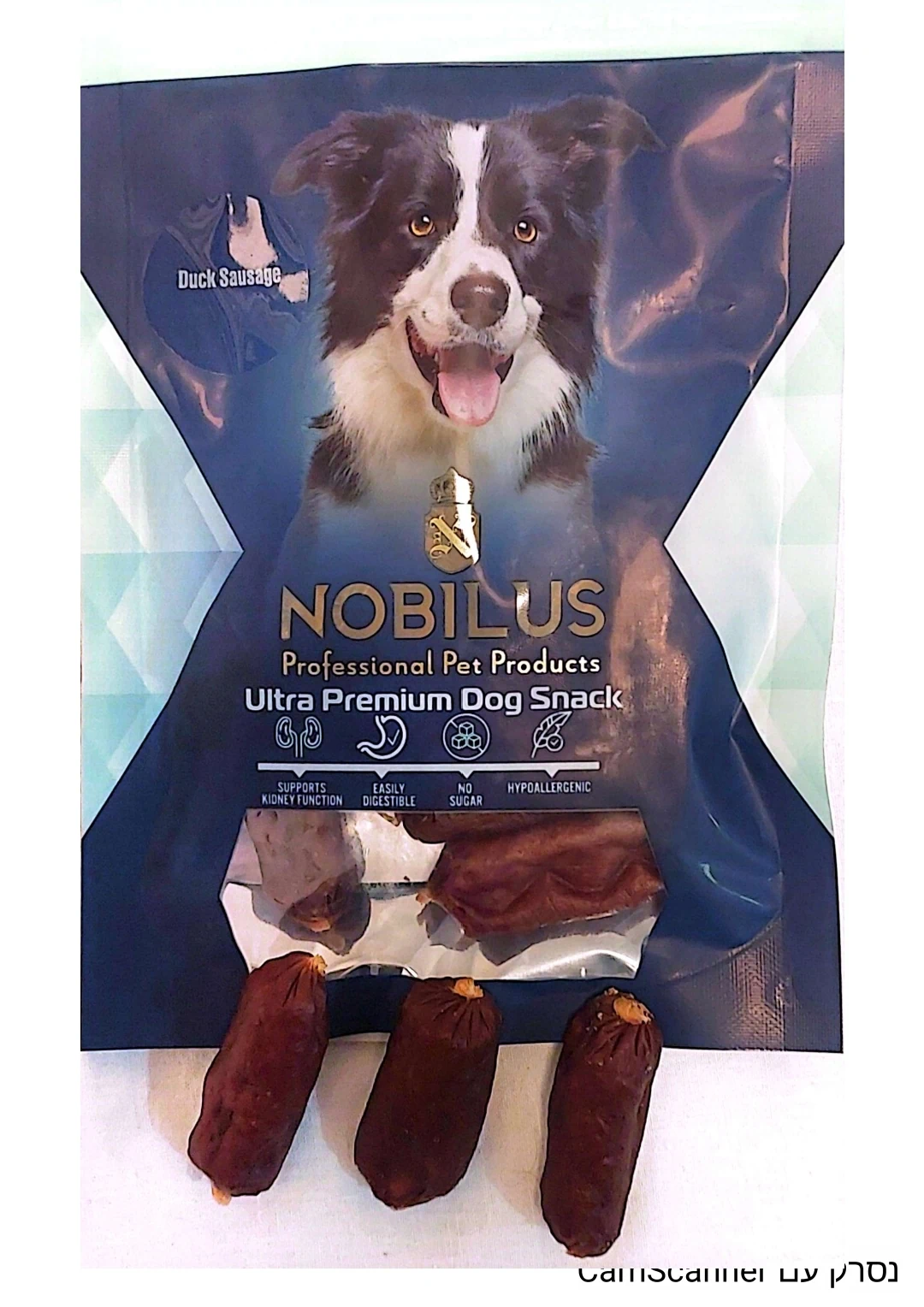 חטיף היפואלרני לכלב בטעם נקניקיות ברווז 80 גרם – נובילוס NOBILUS