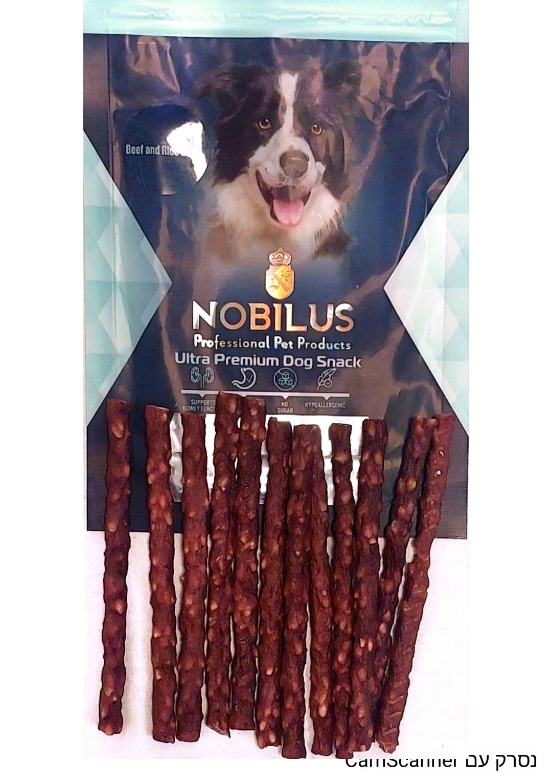 חטיף היפואלרני לכלב בטעם רצועות בקר ואורז 80 גרם – נובילוס NOBILUS